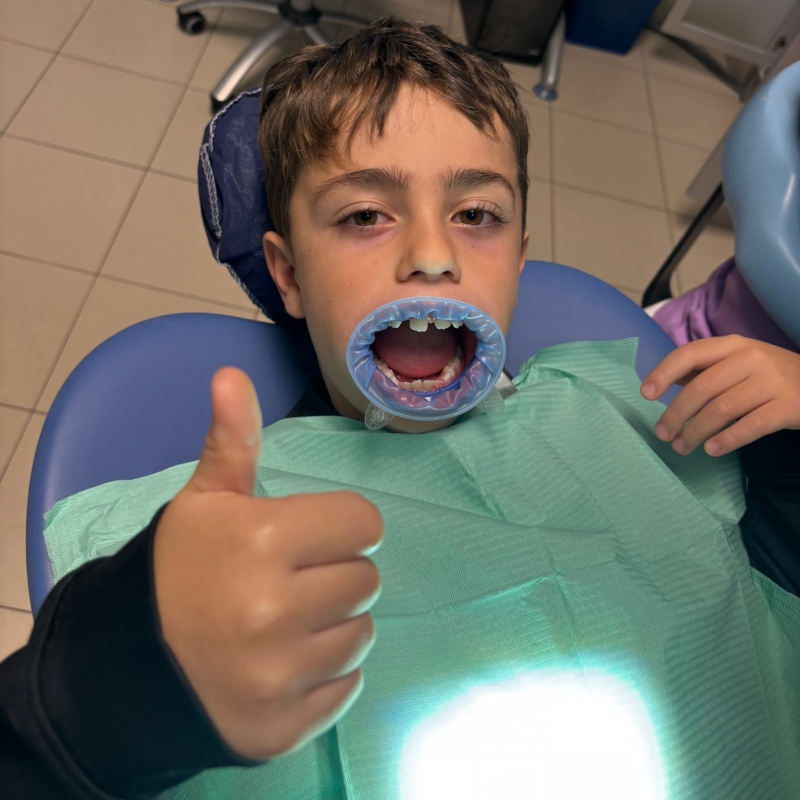È un trattamento rapido e indolore che protegge i molari permanenti applicando una resina protettiva nei solchi dentali.